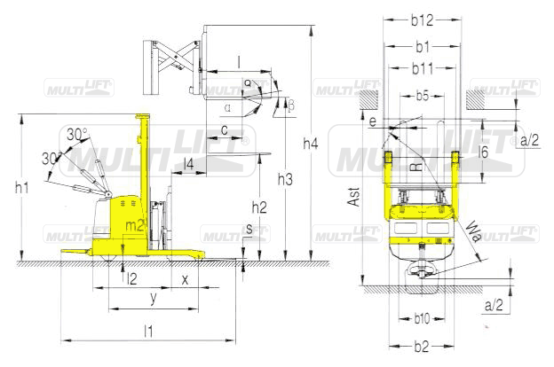 | Equipo: Apilador / montacargas para hombre caminando CON REACH (tijera de alcance). Equipado con sistema de patas estabilizadoras ajustables. Totalmente eléctrico, autopropulsado con capacidad de 1.25 toneladas @ 400 mm. | |||||||