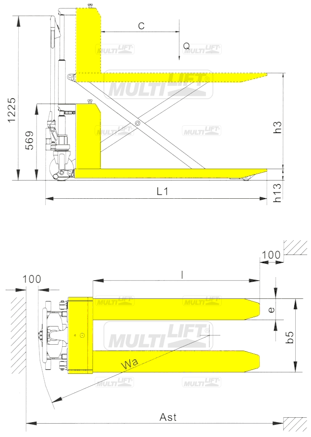Modelo: ELP-1000P con capacidad de 1,000 kilogramos a un centro de carga de 24" (0.61 mts.).